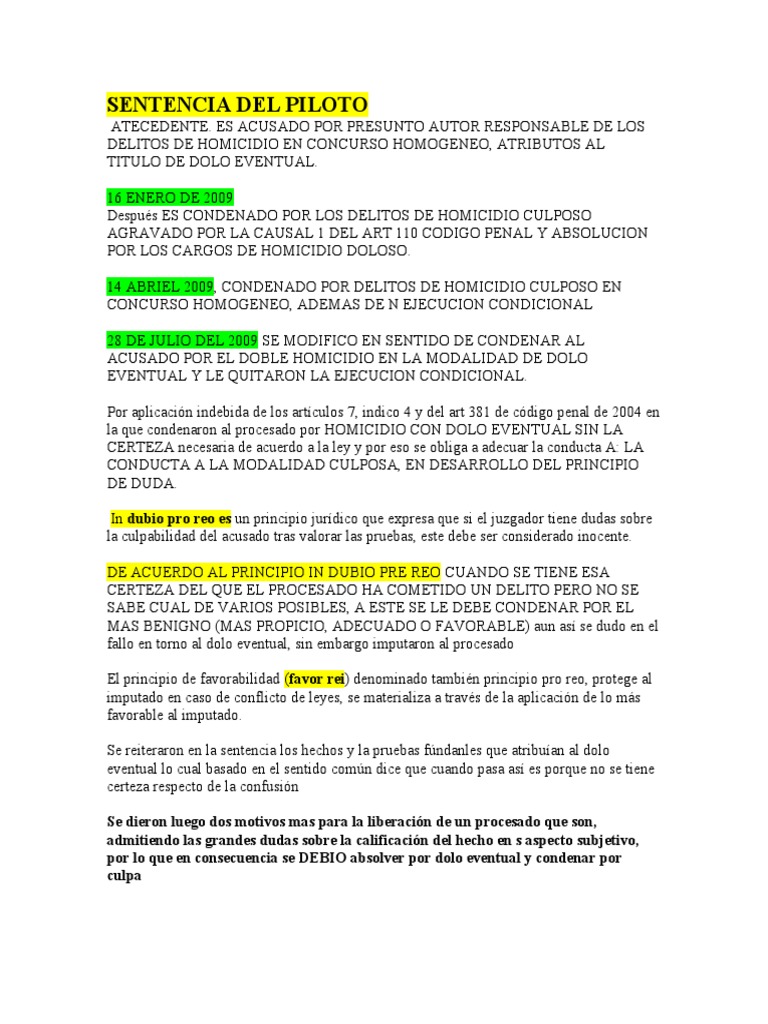 Sentencia Del Piloto Pdf Intencion Derecho Penal Homicidio