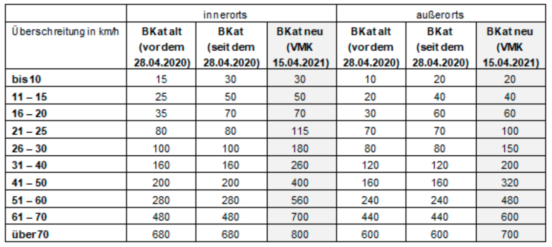 Geschwindigkeitsuberschreitung Bussgeldkatalog 2021